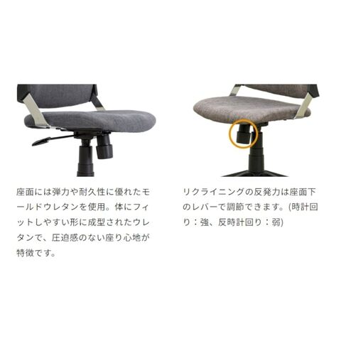 ◆ロッキングの強弱調節:座面下のノブでロッキングの強弱を調節可能です。