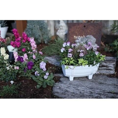 ◆草花の寄植えが、お庭や玄関先に設置しやすいサイズのミニプランター。