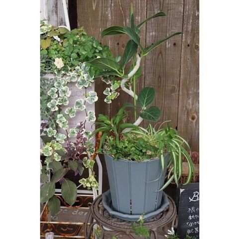 ◆陶器鉢のような手触りと、シンプルで安定感のある寸胴型のフォルムで、観葉植物などをすっきり清潔に飾れます。