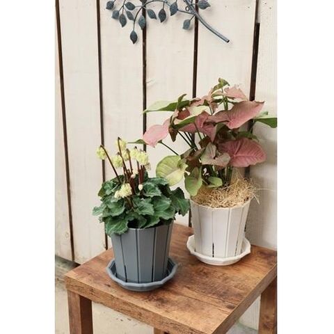 ◆陶器鉢のような手触りと、シンプルで安定感のある寸胴型のフォルムで、観葉植物などをすっきり清潔に飾れます。