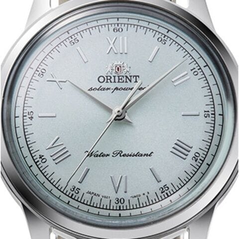 オリエントバンビーノ初のソーラーパワードモデル。コンパクトな38mmサイズ。オリエント初のアップル合成皮革を採用(イージーエクスチェンジストラップ搭載)
