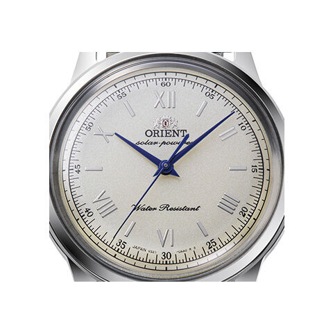 オリエントバンビーノ初のソーラーパワードモデル。コンパクトな38mmサイズ。オリエント初のアップル合成皮革を採用(イージーエクスチェンジストラップ搭載)