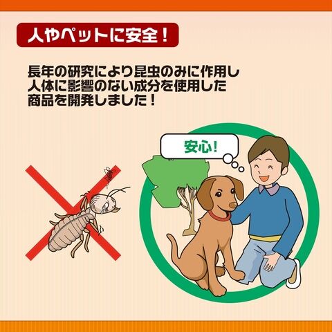 ◆食べさせて巣ごと駆除するシロアリ駆除剤。有効成分は昆虫だけに作用するので、人畜に安全。