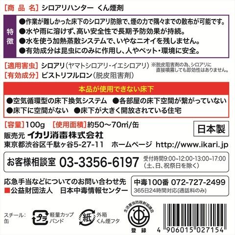 イカリ消毒 シロアリハンターくん煙剤 100g IKARI 205698 【返品種別B】