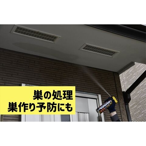 ・春先(4~5月)にスズメバチ、アシナガバチが巣を作りそうな場所(前年巣を作った場所の周辺など)、カメムシ・クモの生息を防ぎたい場所に定期的にご使用ください。