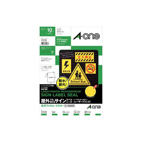 エーワン 屋外でも使えるサインラベルシール[レーザープリンタ]光沢フィルム・イエロー A4 1面 10シート入 屋外でも使えるタイプマグネットセット 31038 【返品種別A】