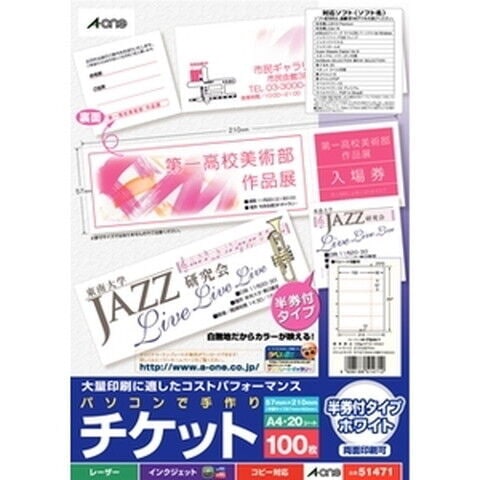 エーワン パソコンで手作りチケット 5面半券付 ホワイト A-one 51471 【返品種別A】