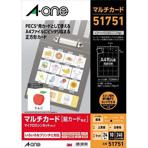 エーワン パソコンで手作り絵カード 正方形 24面 51751 【返品種別A】