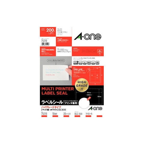 エーワン ラベルシール(プリンタ兼用)ハイグレードタイプ A4・10面・20シート入(四辺余白付) 75210 【返品種別A】