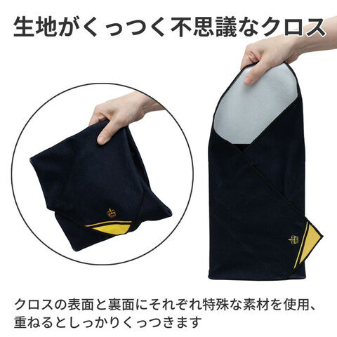 クロスの表面と裏面にそれぞれ特殊な素材を使用、重ねるとしっかりくっつきます。