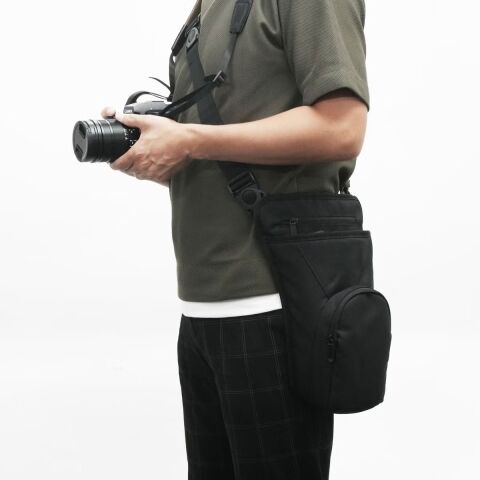 ストラップの長さを調整することでショルダーバッグもしくはウエストバッグとしての使用も可能