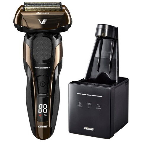 シェーバー イズミ メンズシェーバー[電気シェーバー]【4枚刃】【自動洗浄器付】(ゴールド) IZUMI IZF-V972-N 【返品種別A】