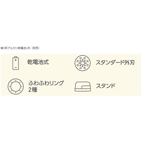 - 質量:約157g(外刃・内刃セット、ふわふわリング装着時、スタンドは除く)