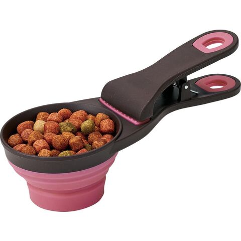 ◆袋の口を挟める便利なクリップと手を汚さずフードをすくえ、コンパクトにもなる折りたたみスコップの2way