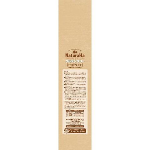 チモシー、アルファルファ、米粉、乾燥おから、タピオカ澱粉粕、脱脂大豆、脱脂米糠、タピオカ澱粉、セルロース、ビール酵母、ブドウ糖、りんご繊維、植物抽出発酵エキス、オリゴ糖、酵母抽出物(ヌクレオチド源)、桑の葉、枇杷の葉、オオバコ、タンポポ、カモミール、ローズマリー、グルコサミン、乳酸菌、ハトムギ、アズキ、ハス果実、オオバコ種子、オタネニンジン、カンゾウ、ミネラル類(塩化ナトリウム、硫酸亜鉛、硫酸銅、硫酸コバルト、ヨウ素酸カルシウム)、アミノ酸類(DL-メチオニン、L-トリプトファン)、ビタミン類(コリン、ナイアシン、C、E、パントテン酸、B6、A、B2、葉酸、ビオチン、D3)