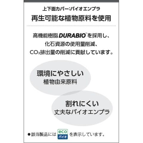- 上下面カバー:樹脂(バイオエンプラ)・透明消し