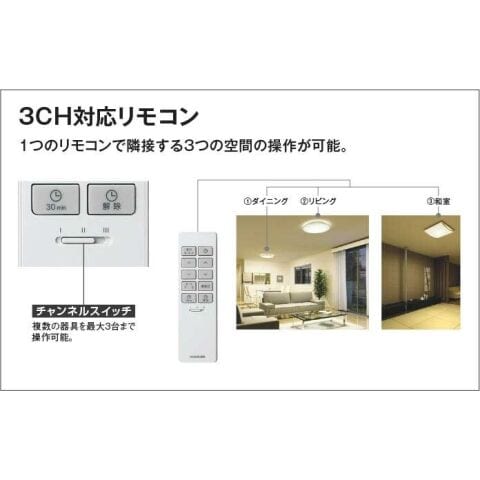 - 付属品:フル引掛けシーリング×1個、木ネジ×2本、リモコン×1個、リモコンホルダー×1個、リモコン取付用木ネジ×2本、単4形乾電池×2本、取扱説明書