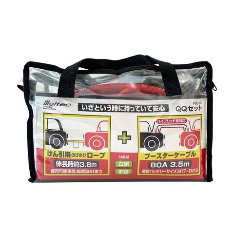 バッテリー適合サイズ:B17~D23セット内容牽引用ロープ(総重量2tまで)、80A 3.5mブースターケーブル、手袋、白旗セット