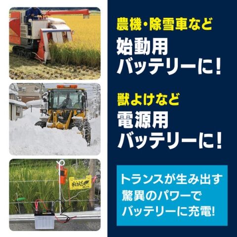 ◆農機・船舶・獣除け用バッテリーの充電に最適なトランスタイプ バッテリー充電器
