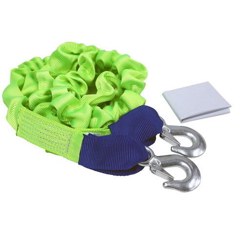 故障車のけん引に! けん引時の衝撃を和らげる伸縮するゴムを使用白旗入りロープ長さ 約2m~約4m車両総重量2tまで破断張力:約3.3t