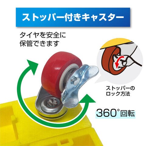 • 材質:本体/PP+PE、連結ピン/ナイロン、滑り止め/合成ゴム、キャスター金具/スチール、キャスター車輪/TPU、付属品/けん引ロープ(2m)