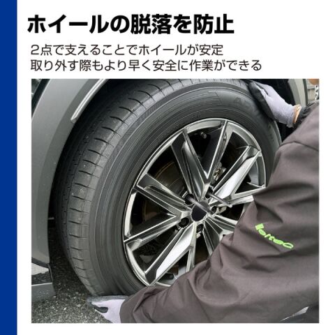 ホイールの脱落を防止2点で支えられることでホイールが安定。