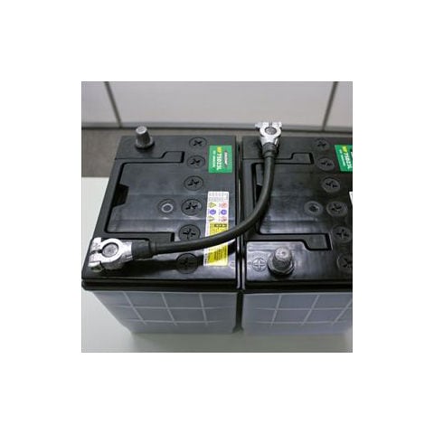 ◆12Vバッテリーのプラス端子ともう一つの12Vバッテリーのマイナス端子をつないで24Vバッテリーにするケーブル。