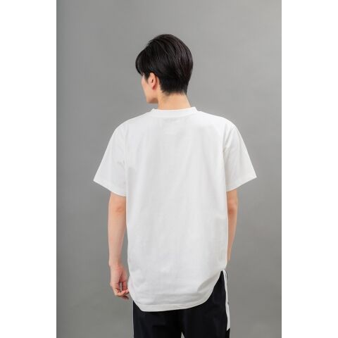 ◆胸中央に配置した同色のロゴグラフィックが、シンプルなデザインにさりげないアクセントをプラス。