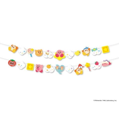 「星のカービィ」のキャラクターやアイテムのカードと、カードを通すひもがセットになったガーランドです。