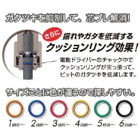◆樹脂リングが芯振れ・ガタつきを抑制し、正確な穴あけを実現します。