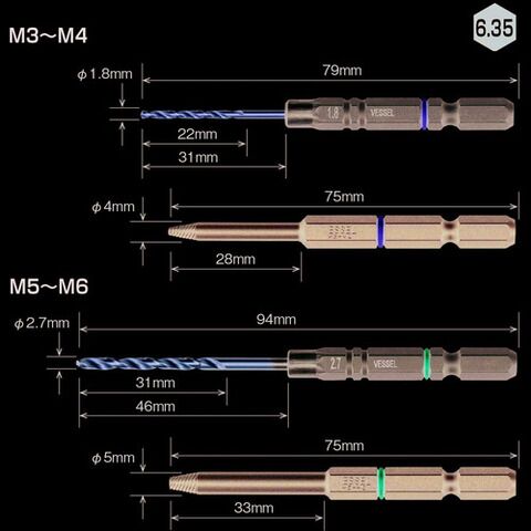 - セット内容:ドリルビット1.8mm、2.7mm、ねじビットφ4、5mm