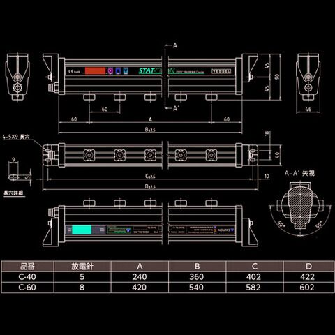 マイナス側:60%~30% - イオンバランス:±30V(距離1000mm)