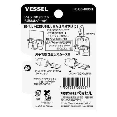 ベッセル クイックキャッチャー3連ホルダー レッド VESSEL QB-10B3R 【返品種別B】