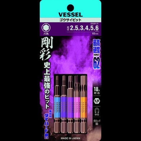 ベッセル 剛彩ビット 5本組 (片頭ヘックス) アソート65mm VESSEL GS5P-31 【返品種別B】