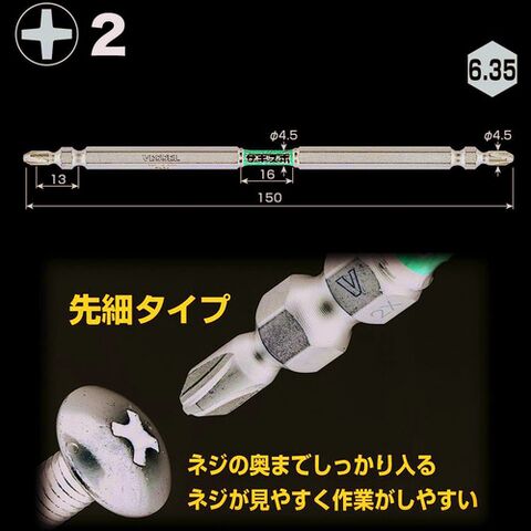 ◆刃先が先細形状になっており、ねじ頭が断然見やすく作業効率が大幅に上がります。