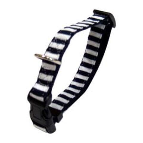 ◆ナイロン生地にストライプ柄のかわいいワンタッチ首輪。