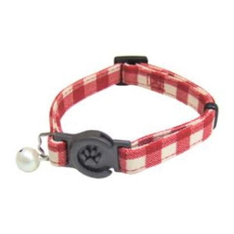 ◆チェック柄の肌に優しいコットン生地を使用した猫専用首輪。