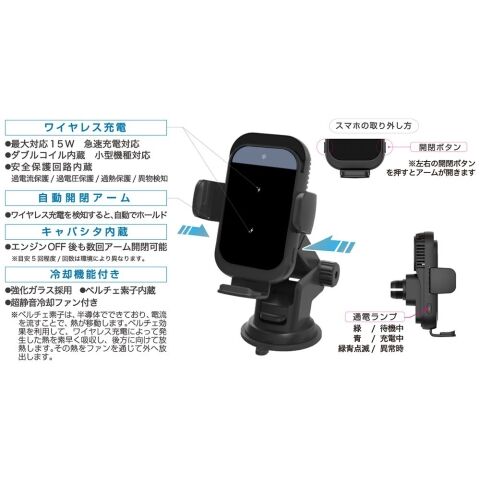 ◆冷却ファンとペルチェ素子は充電開始時に自動起動。(スマホを取り外して約30秒後に自動停止。)