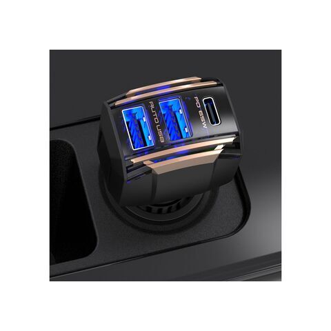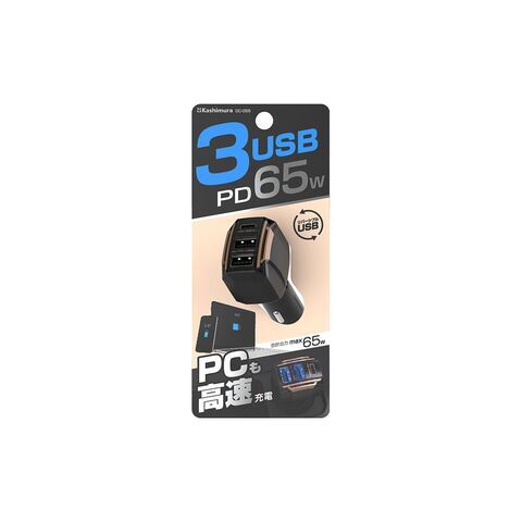 カシムラ PD65W対応 Type-C1ポート/USB2ポート DC充電器 自動判定 DC-055 【返品種別A】