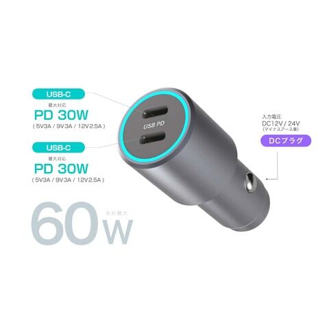 カシムラ PD30W×2 Type-C2ポート DC充電器 DC-064 【返品種別A】