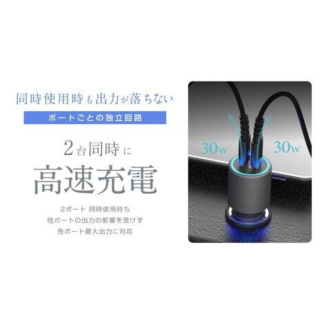 ◆車のDCソケットを3ポートのUSB電源に変換。PD30W対応USB-C × 2ポート。