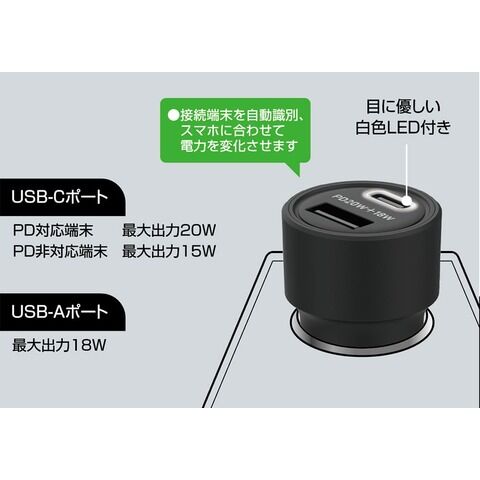 - 出力電圧/電流:【USB-A】最大QC3.0対応18W (5V 3A 9V 2A 12V 1.5A)【USB-C】最大PD対応20W (5V 3A 9V 2.22A 12V 1.67A)【2ポート同時使用時】2ポート合計最大38W(PD20W+QC18W)