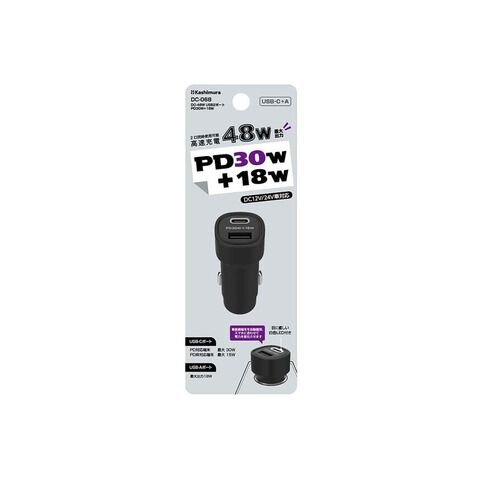 カシムラ PD30W+18W Type-C1ポート/USB1ポート DC充電器 DC-068 【返品種別A】