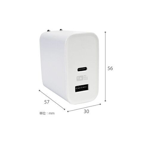 ◆持ち運びに便利な、USB-AポートとUSB Type-Cポート搭載のAC充電器。