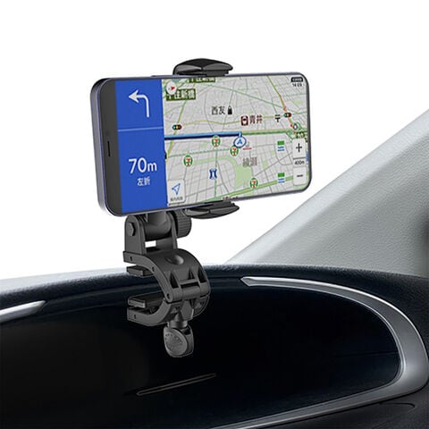 ◆クランプ式の取り付けアームでガッチリ取り付けできるスマホホルダー。