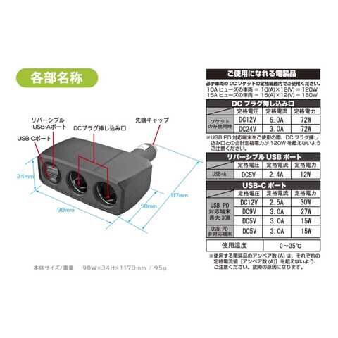 ※USB PD対応端末をご使用の際、DCプラグ挿し込み口との合計定格電力が120Wを超えないようご注意ください。