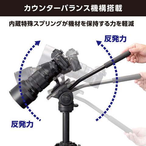 ※カウンターバランスの反発力は調整やOFFにすることはできないので、カメラの形状や重さにより、必ずしも最適バランスになるわけではありません。(約1.5kg固定/重心高55mm時)