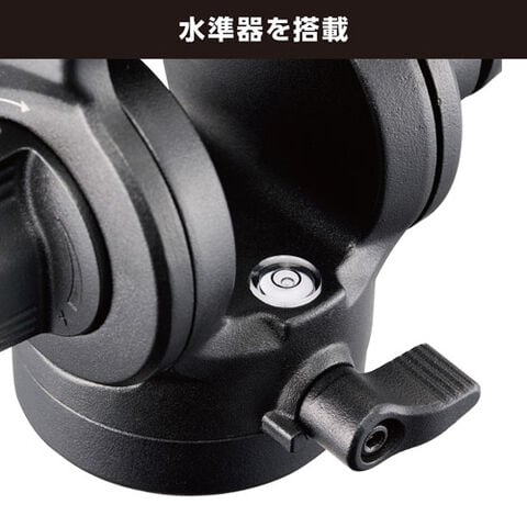 雲台の水平がしっかり確認できる視認性の高い丸型水準器を装備しています。