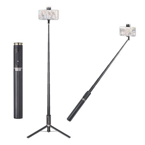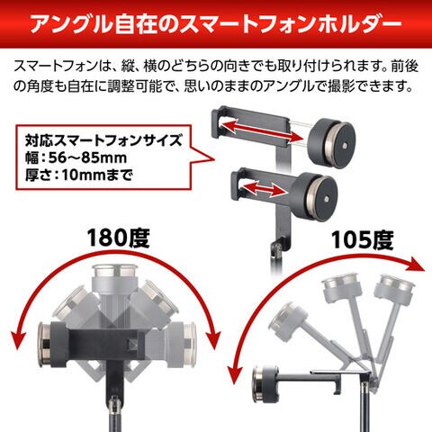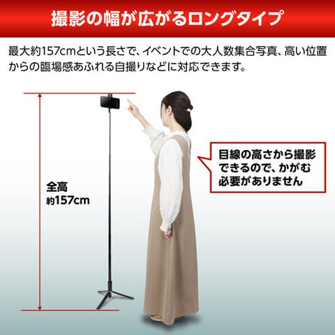 スマートフォンとカメラどちらでも使える、便利なリモコン付きロングスタンド