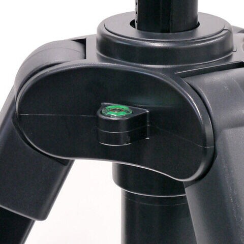三脚の水平がしっかり確認できる、視認性の良い丸型水準器を標準装備しています。